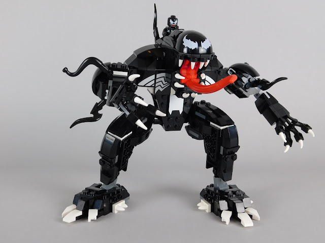 While the mech doesn't feel like an after-thought, it does only use 1/5 of the bags in this kit. Therefore, the back of the Mech has no attempt to hide anti-studs. The lack of pieces also leads it to feel small, particularly in comparison to the Venom it's supposed to square off against. Another consequence of the small piece count is that the "Web Shield" or "Web Blaster" feels extraordinarily small for the ENTIRE set.
